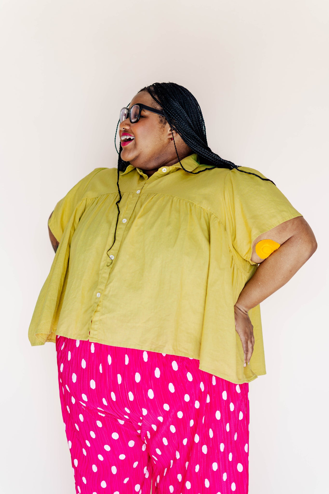 Say hello to a fresh new silhouette in our lineup: the Button Mushroom Top! We took our bestselling Boxy Collared Top and gave it a playful twist. Same collared button-up charm, now with a defined chest seam and a softly voluminous shape that mushrooms out below.