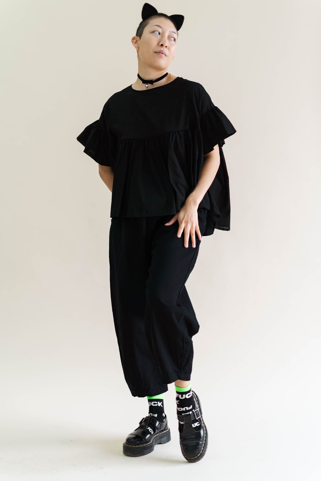 If you love our Mid Easy Pant in Black Linen, we made this pant for you. Our new barrel style now in a Nettle fav, timeless black.