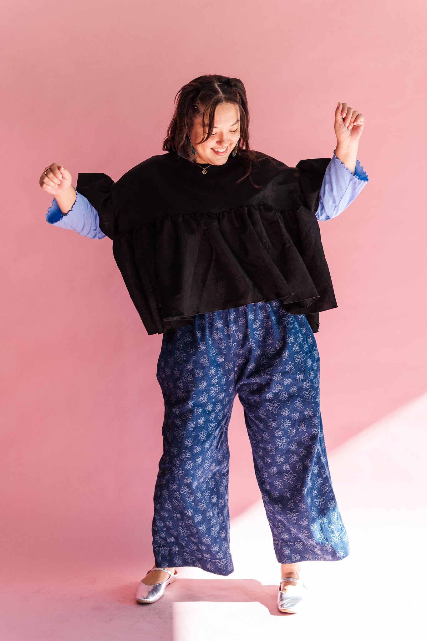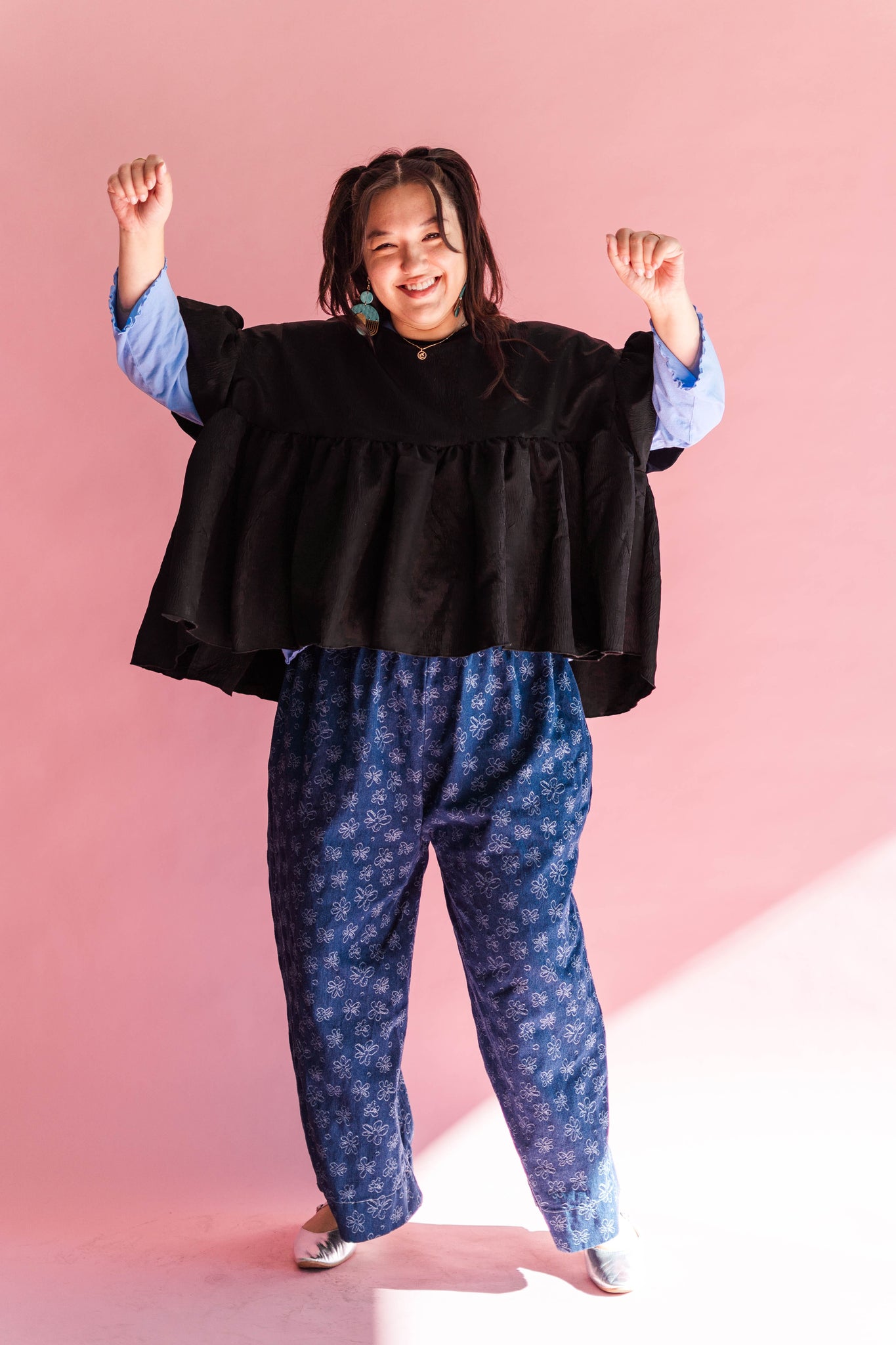 MODEL Angie (she/they) is 5’ 9.5” with a 33” inseam and measures 41.5” bust, 37” waist, and, and 41” hips.