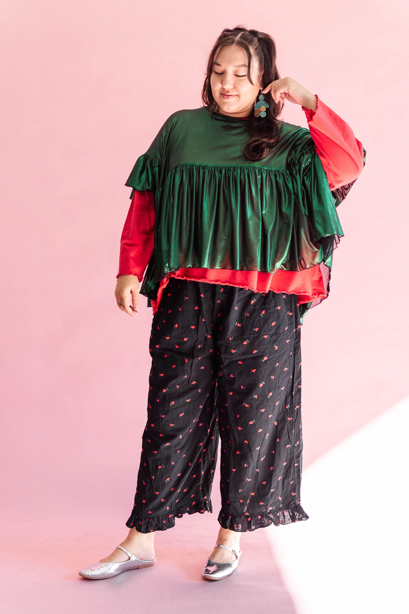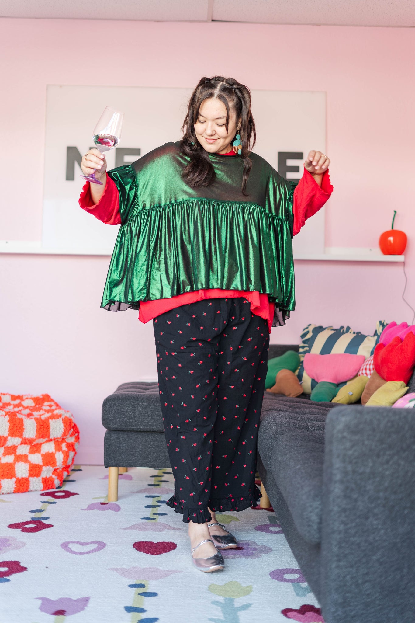 MODEL Angie (she/they) is 5’ 9.5” with a 33” inseam and measures 41.5” bust, 37” waist, and, and 41” hips.