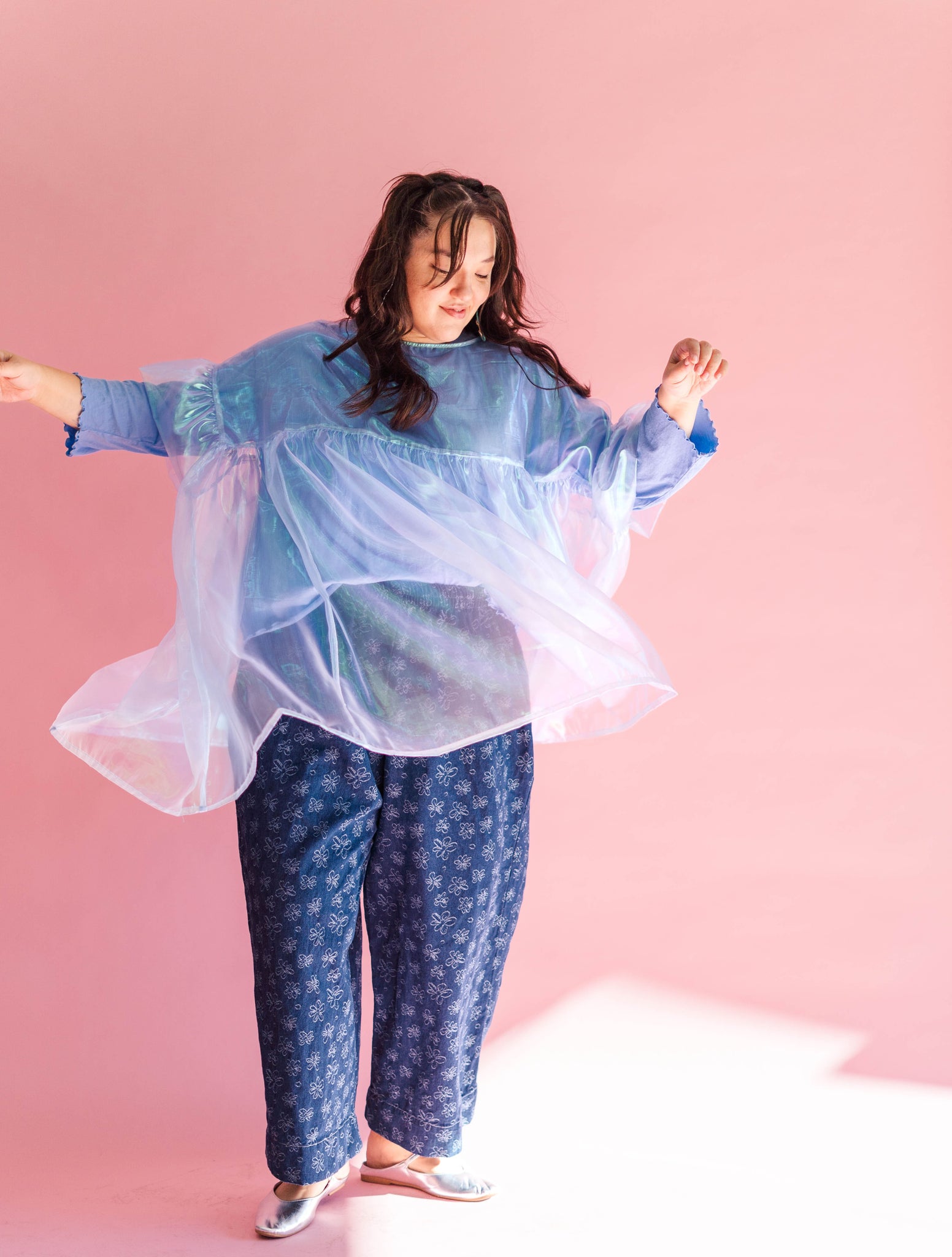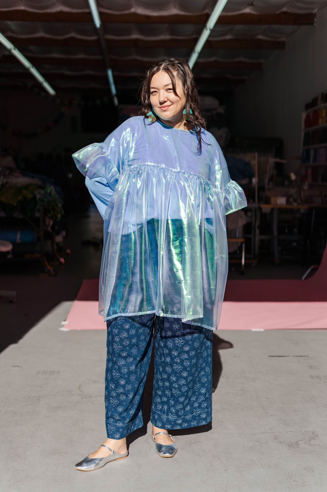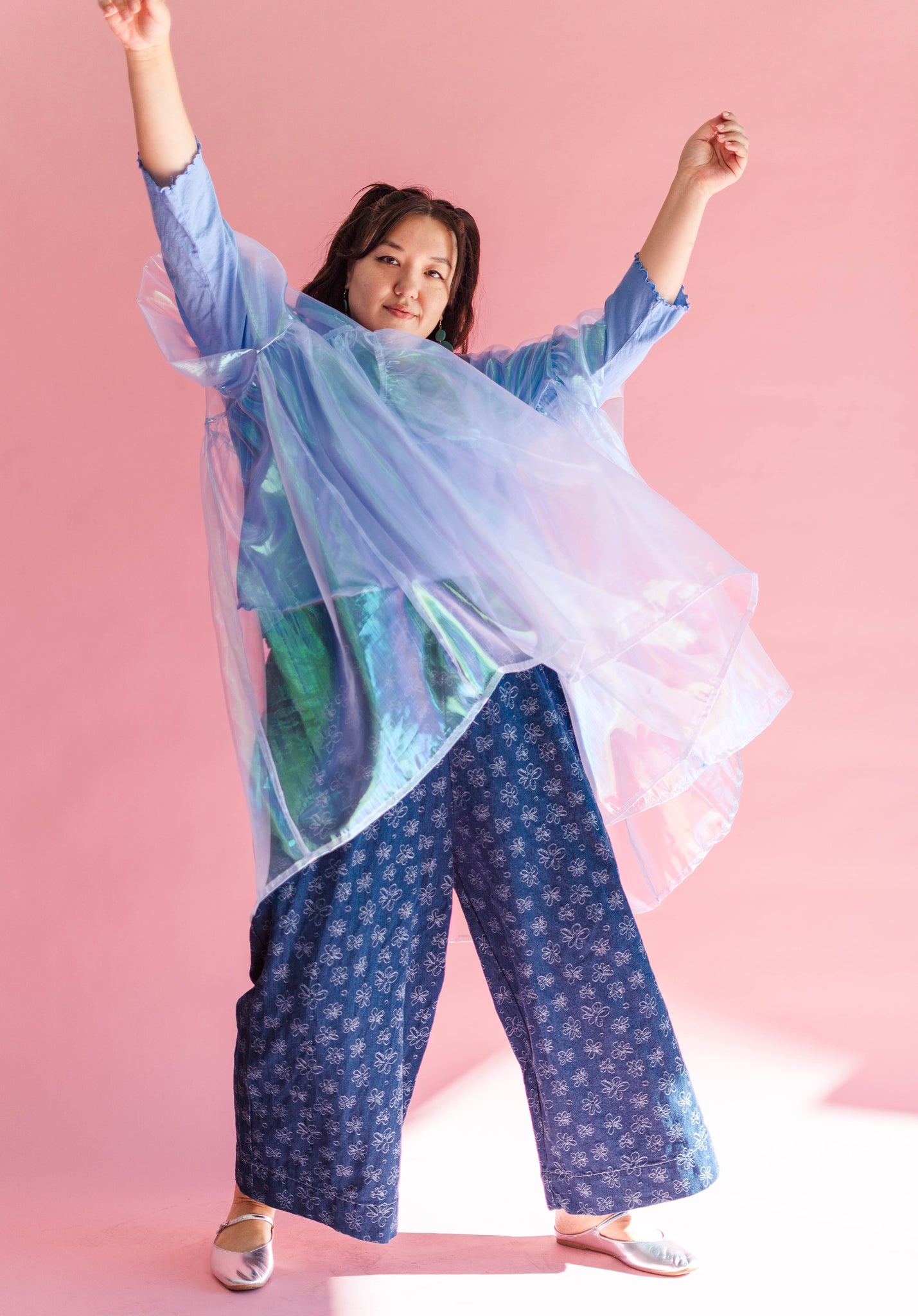 MODEL  Angie (she/they) is 5’ 9.5” with a 33” inseam and measures 41.5” bust, 37” waist, and, and 41” hips.