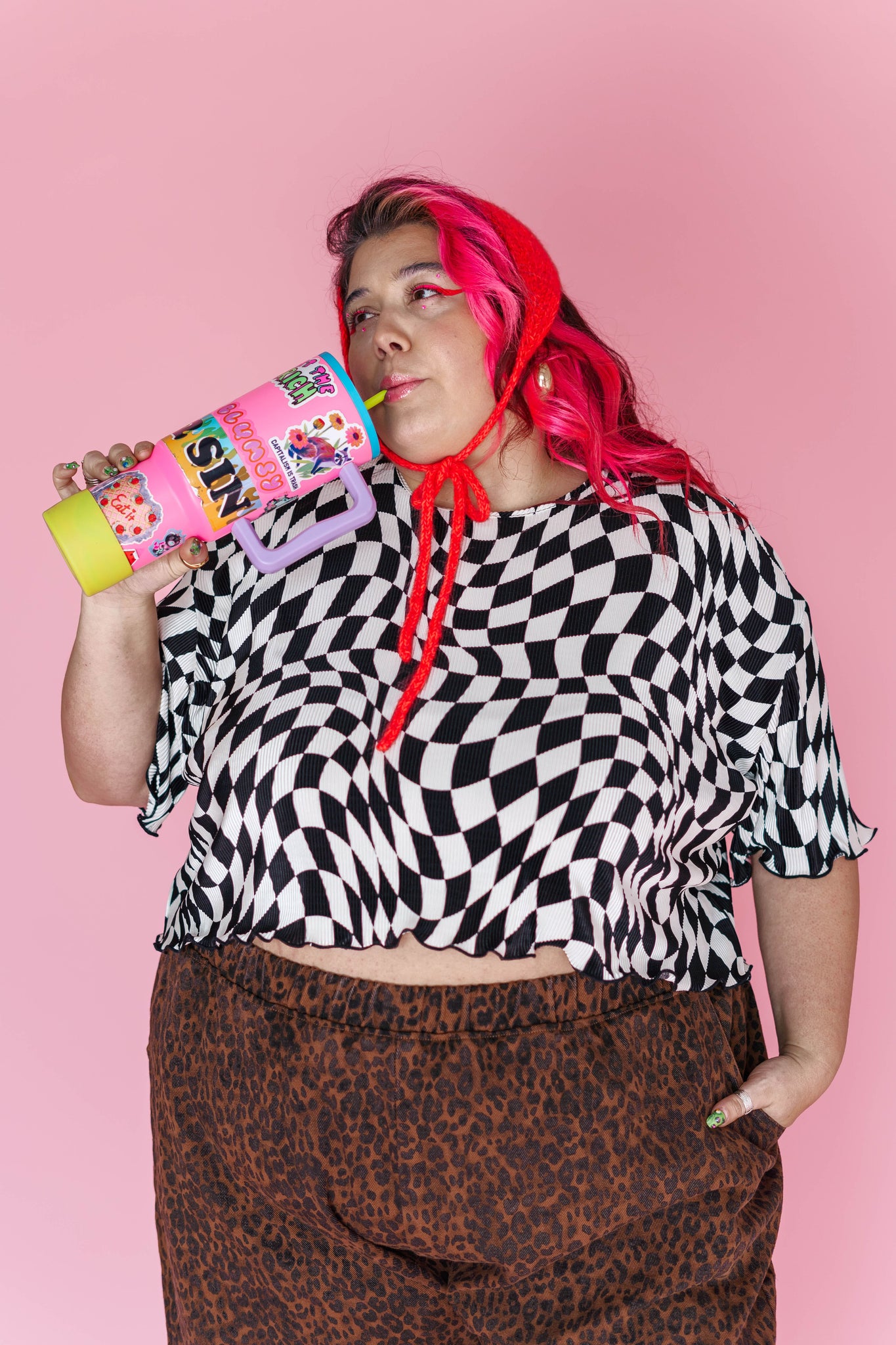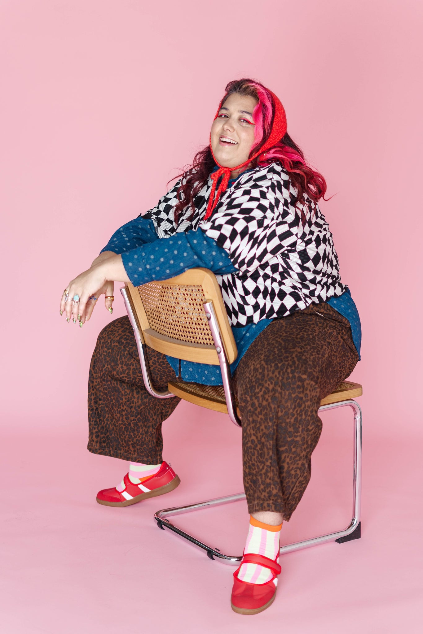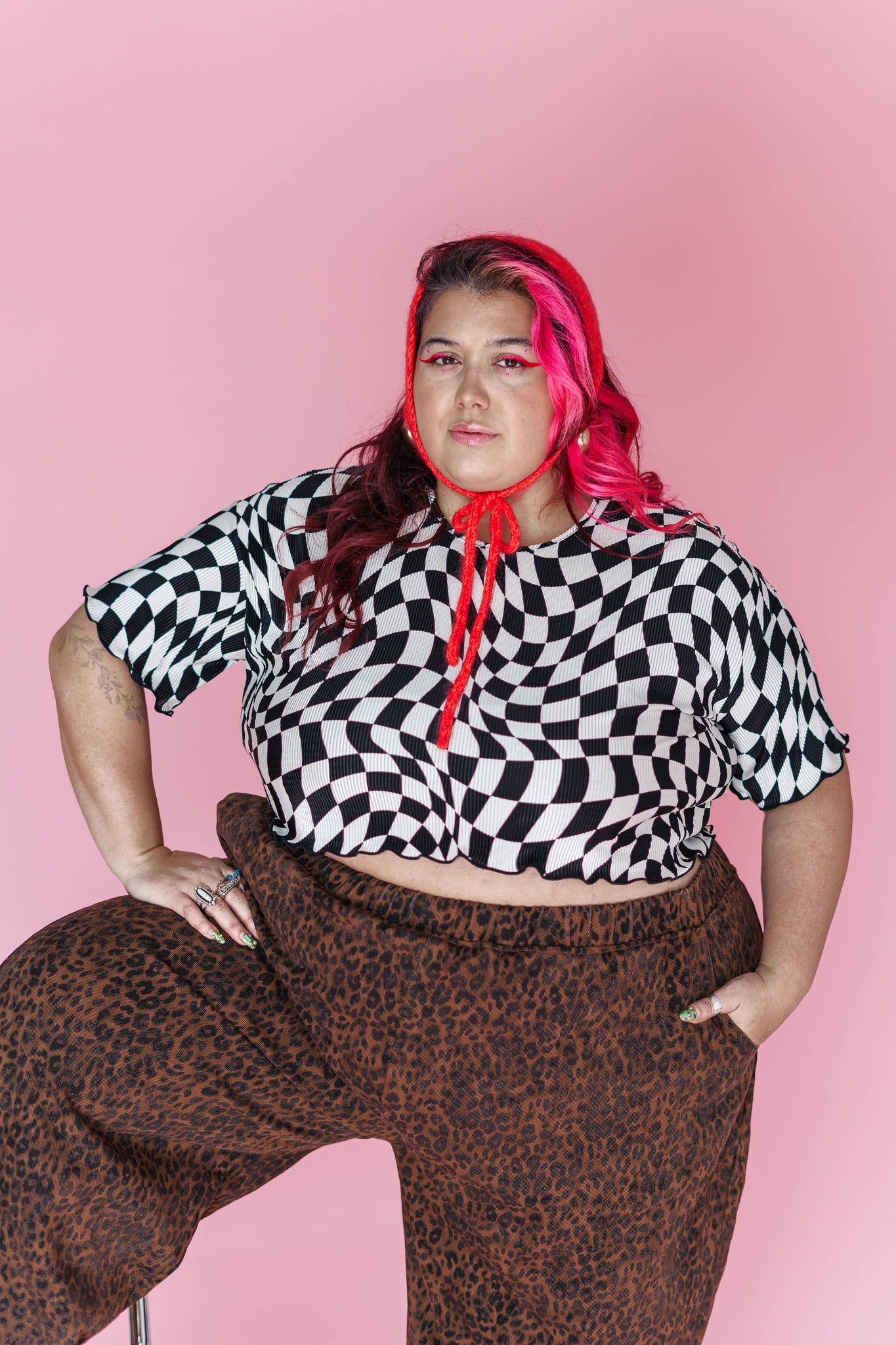 Wiggly Checkers: Instead of tidy little squares, this print goes full funhouse. The checks are warped, wavy, and a tiny bit trippy—some areas bend more than others, and that irregular vibe is exactly what we love about it. It looks like it’s gently in motion even when you’re standing still.