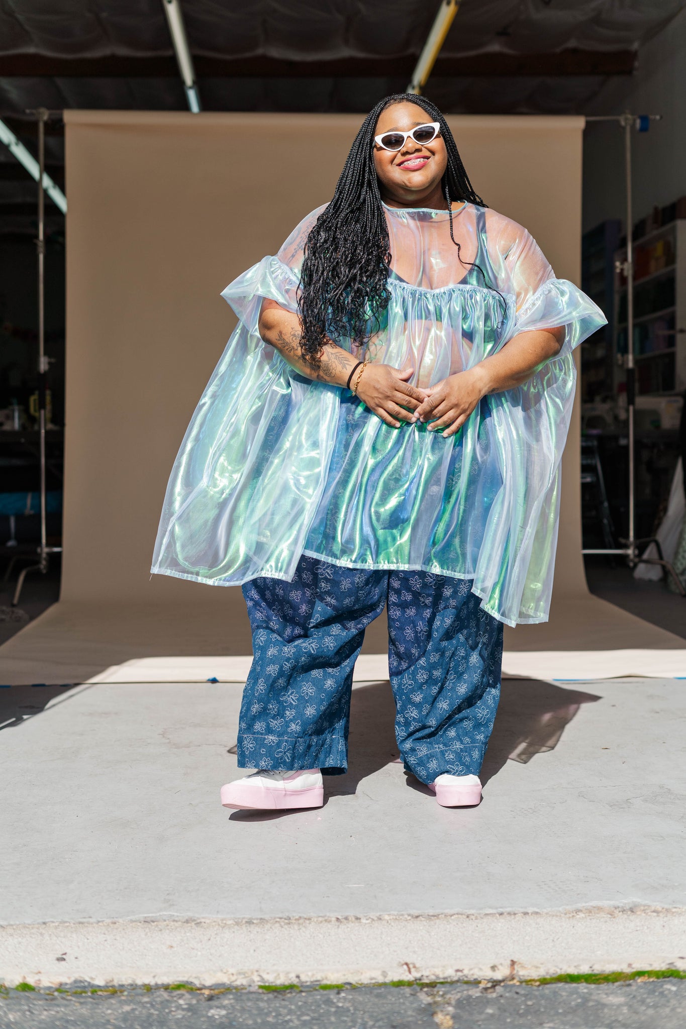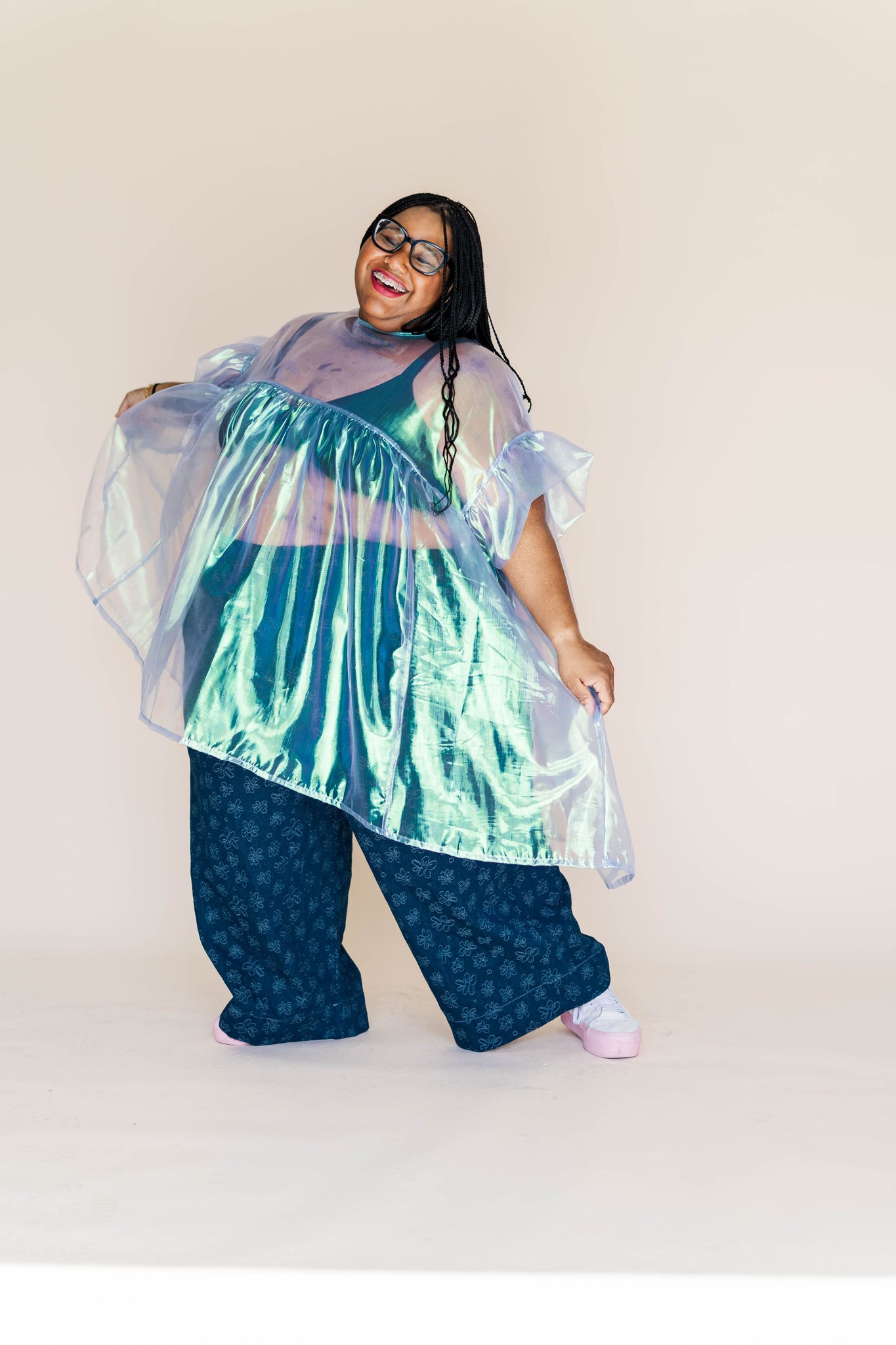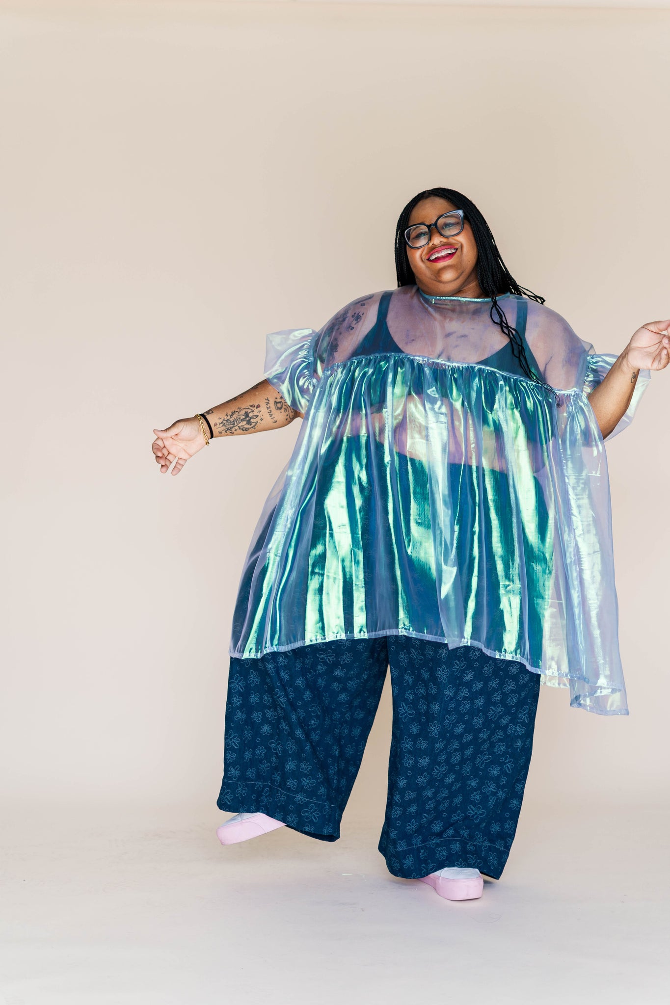 MODEL Keda is 5'2" and measures 60" bust, 54" waist, 65" hip. Angie (she/they) is 5’ 9.5” with a 33” inseam and measures 41.5” bust, 37” waist, and, and 41” hips.