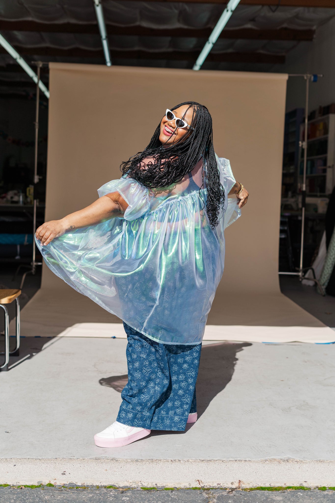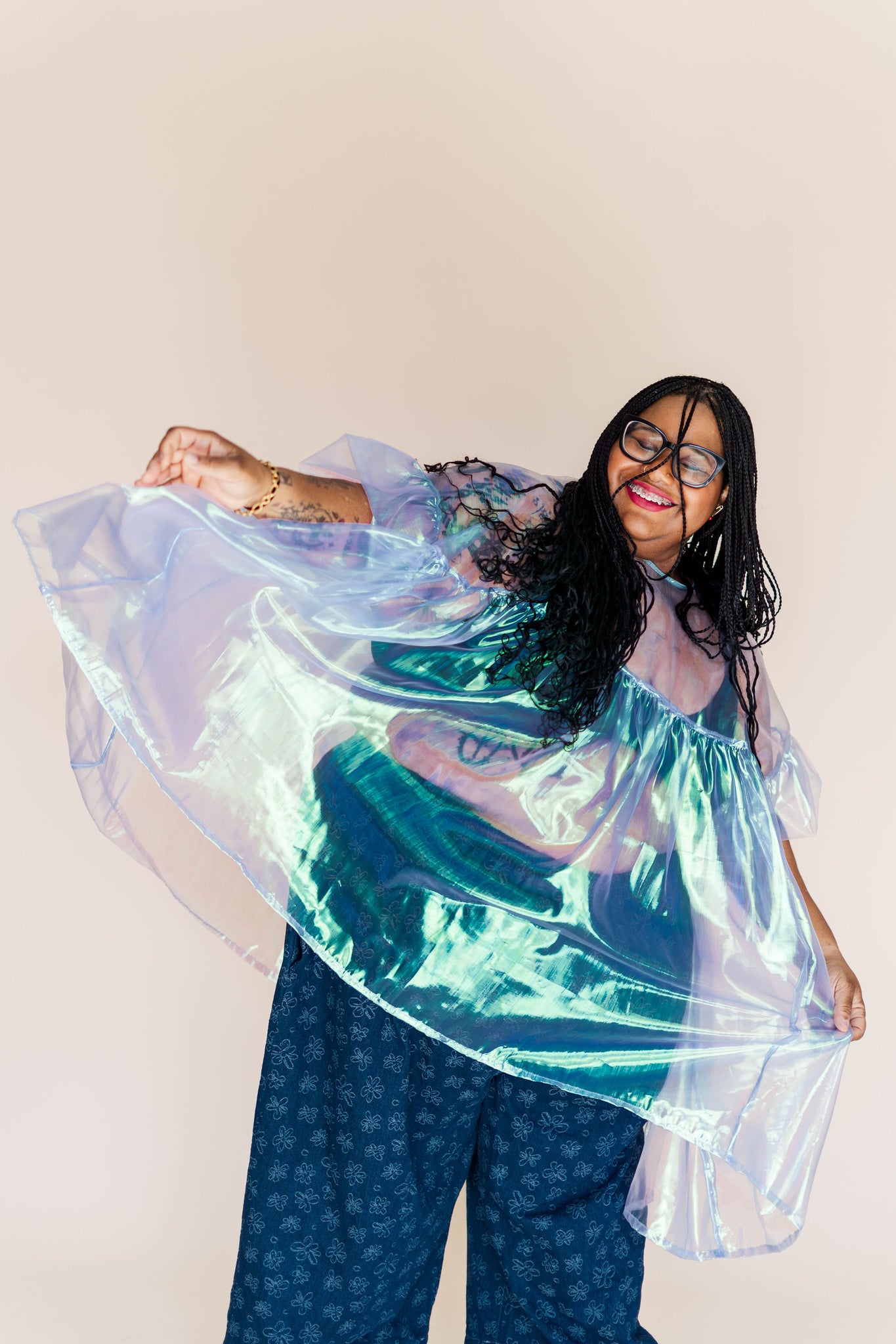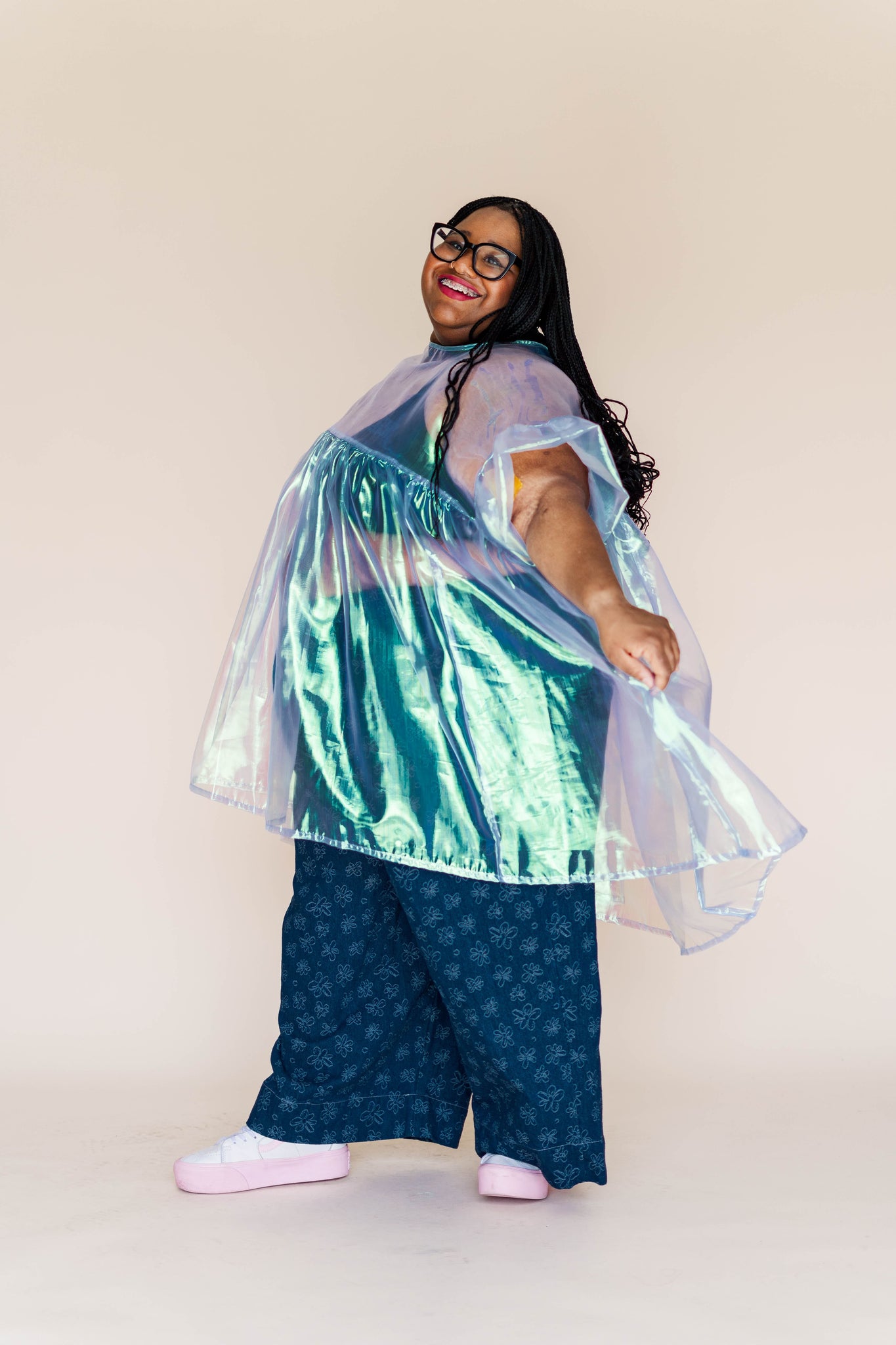 MODEL Keda is 5'2" and measures 60" bust, 54" waist, 65" hip. Angie (she/they) is 5’ 9.5” with a 33” inseam and measures 41.5” bust, 37” waist, and, and 41” hips.