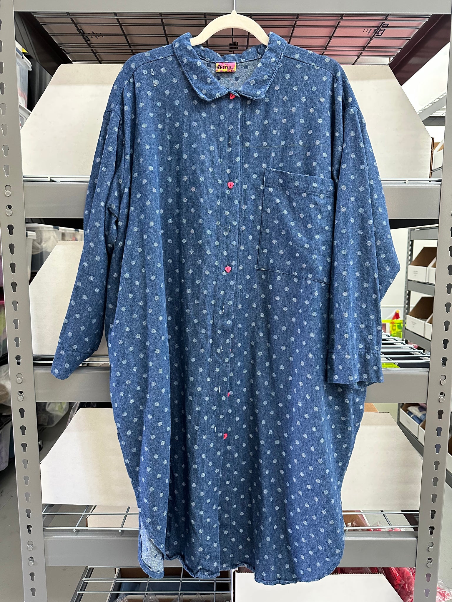 Introducing our Soft Volume Shirt Dress in Polka Dot Denim! 💙