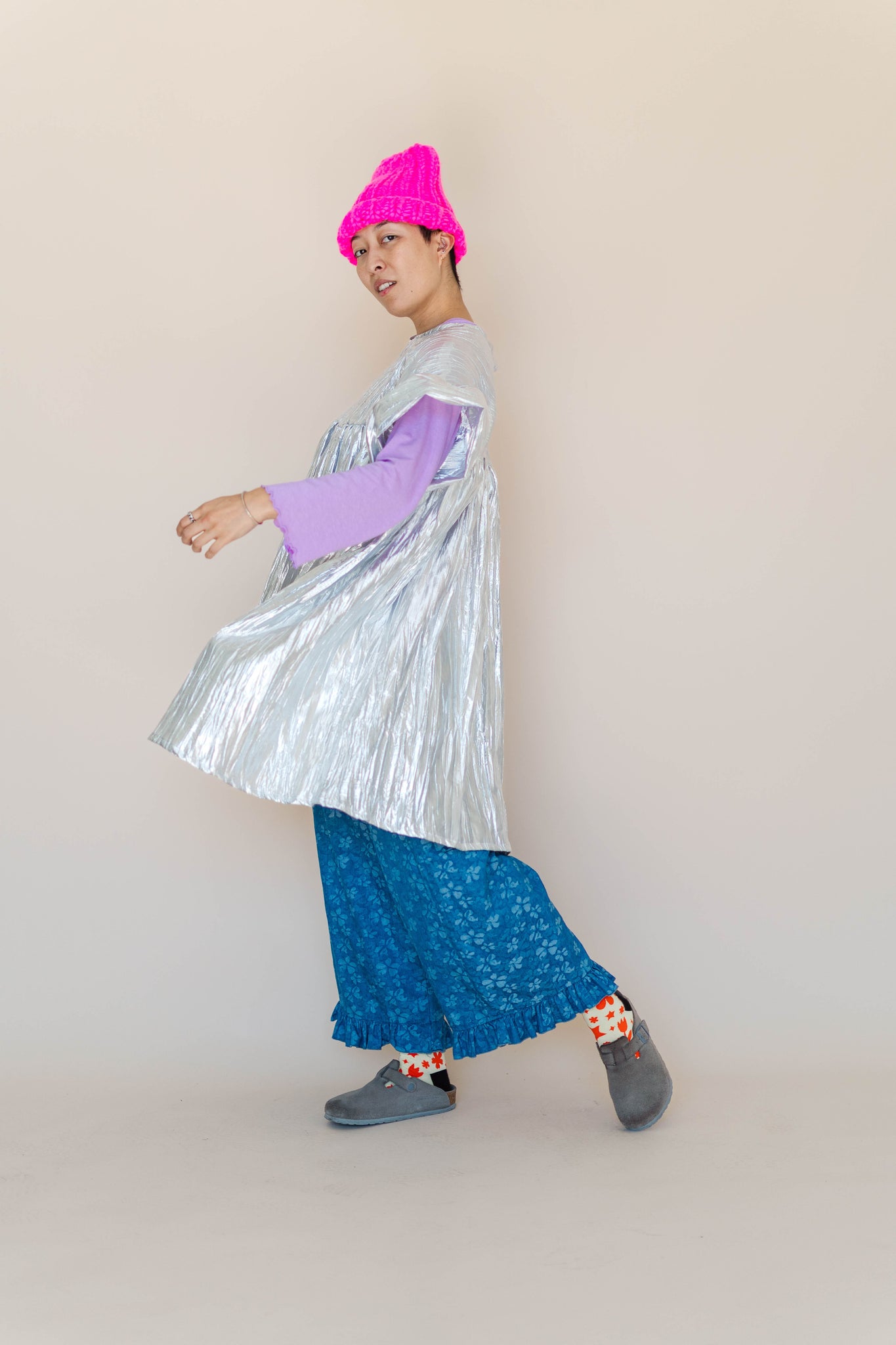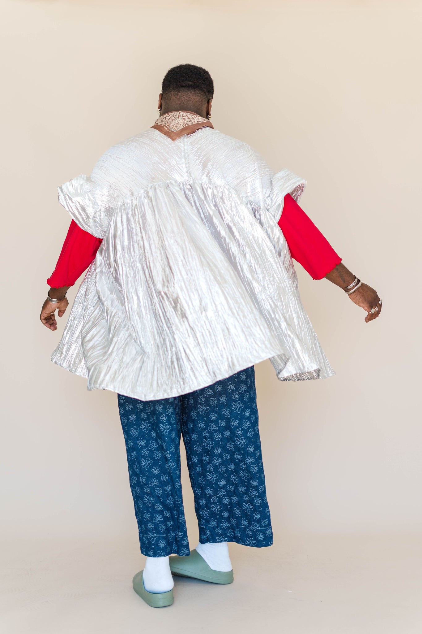 Our Mushroom Top style was such a hit that we couldn’t resist bringing you a party-ready dress version! Meet the Mushroom Dress in Silver Metallic, a perfect blend of festive whimsy, ethereal shine, and effortless sophistication. This dress is everything you adored in the top, now in a show-stopping silhouette ready for every celebration, from holiday feasts to starry midnight toasts.
