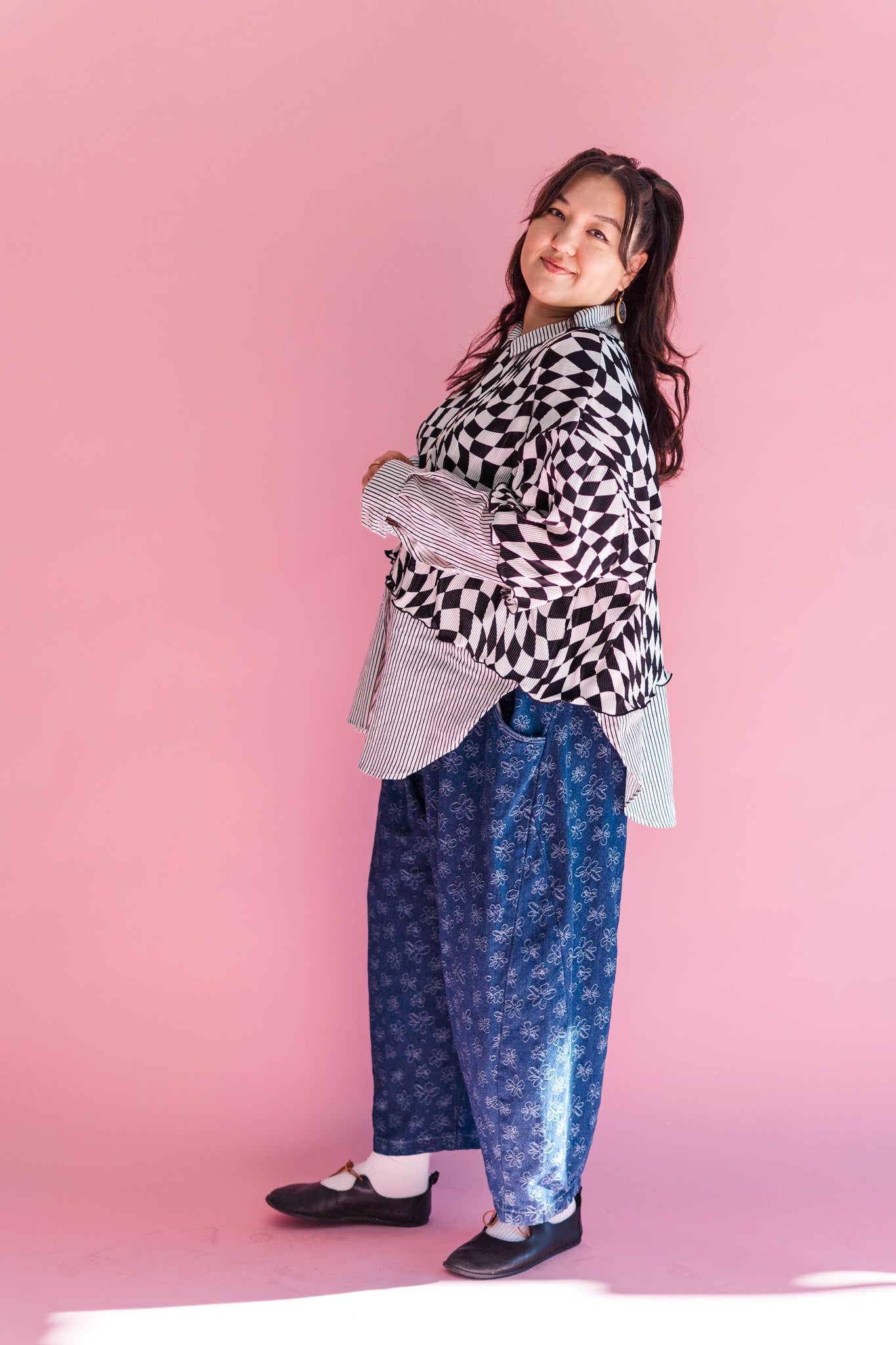 Nettle Deadstock: This is true Nettle hoarder-core. We’ve had this bolt of checkered fabric hanging around the studio since 2021. This time arounf we turned it into these slouchy tees instead of letting it sit sad and unused.