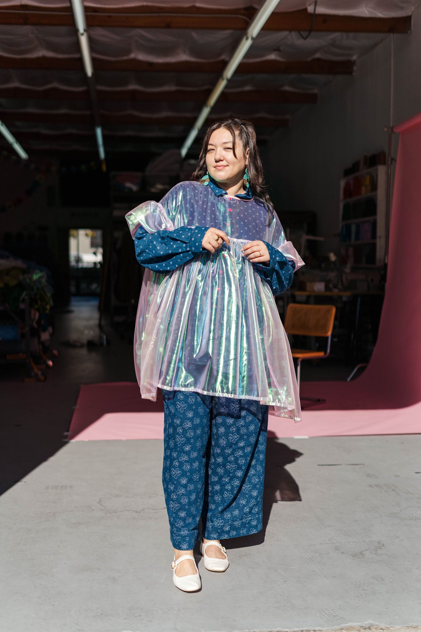 MODEL  Angie (she/they) is 5’ 9.5” with a 33” inseam and measures 41.5” bust, 37” waist, and, and 41” hips.