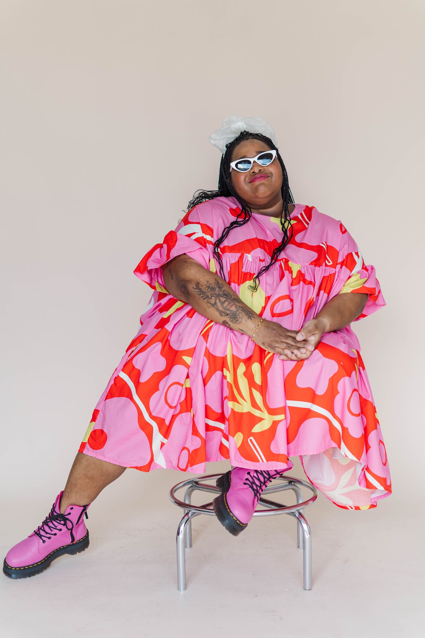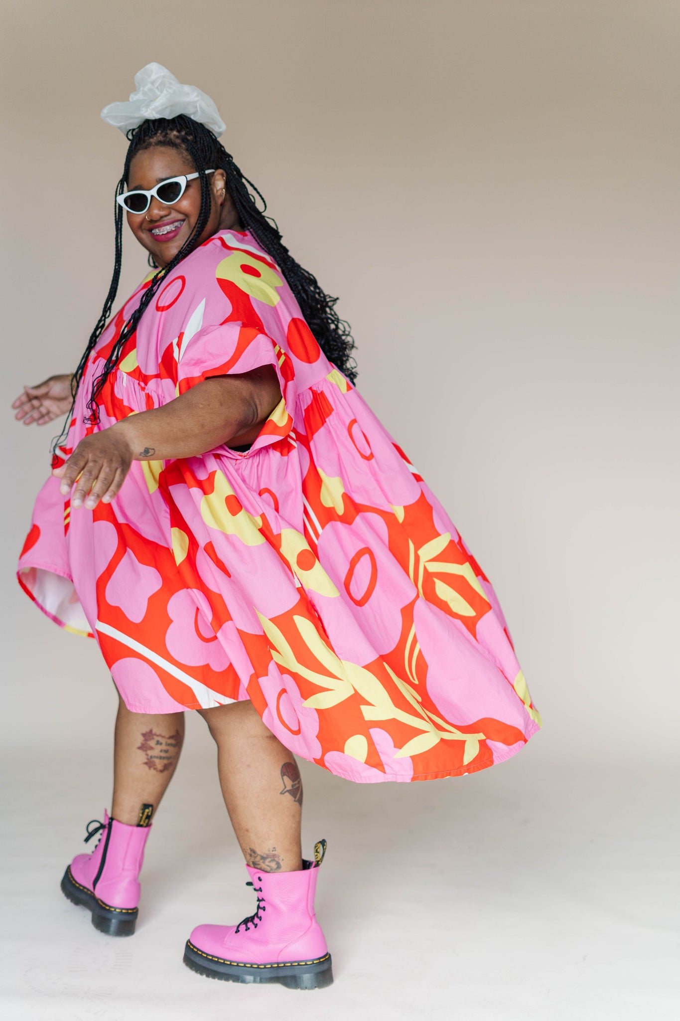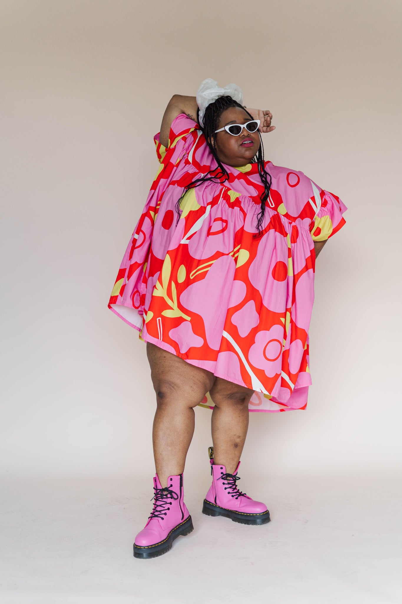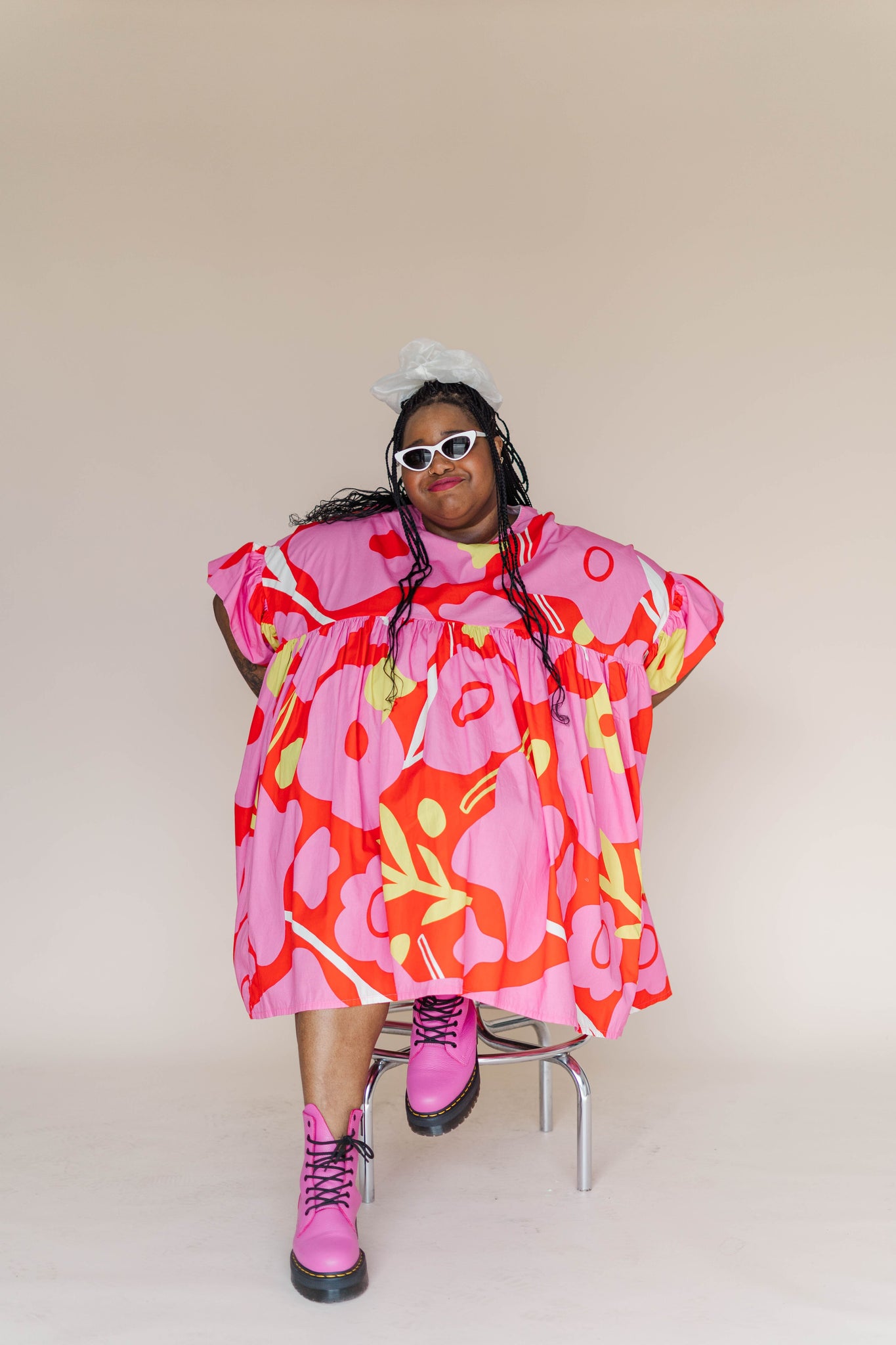 The Mini Mushroom Dress in Petal Pop is the first print in our series with Erin and truly a wearable piece of art. Loud in the best way. Go ahead, turn every sidewalk into a runway.